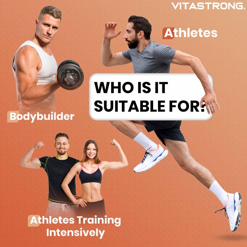 Vitastrong EAA Pro ist ideal für alle, die intensiven Sport treiben und ein Komplettprodukt zur Leistungsoptimierung suchen. Perfekt für Sportler, Bodybuilder oder alle, die ihr Muskelwachstum fördern und die Erholung nach dem Training verbessern möchten.