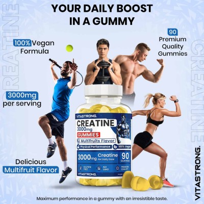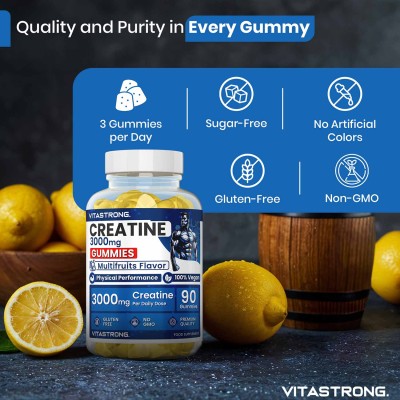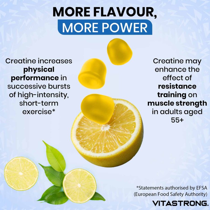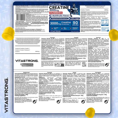 Die neue Version von Creatine Vitastrong in Gummibonbons ist ein innovatives Nahrungsergänzungsmittel für alle, die hohe körperliche Leistungsfähigkeit anstreben, aber auf Pulver und Messlöffel verzichten möchten. Jede Dosis (3 Bonbons) enthält 3000 mg Kreatin , die ideale Dosierung zur Verbesserung von Kraft, Explosivität und Ausdauer bei kurzen und intensiven Übungen.