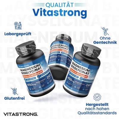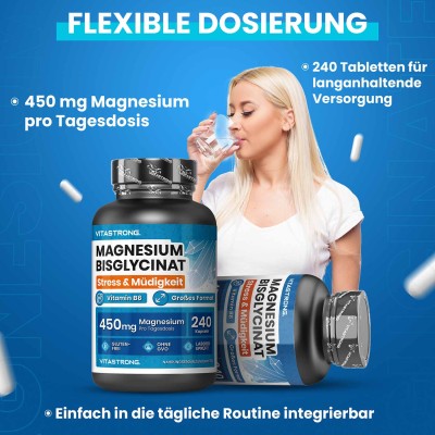 Unsere Formel liefert 450 mg Magnesiumbisglycinat pro Tag – eine gezielte Dosierung, die Ihnen hilft, Ihre Vitalität, Konzentration und Ihr allgemeines Wohlbefinden wiederzuerlangen.