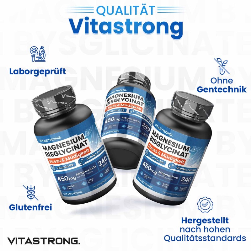 Magnesium ist nicht gleich Magnesium: Bisglycinat gilt als „Premium“-Form, weil es besser vom Körper aufgenommen wird , im Magen besser vertragen wird und effektiv auf Energie, Muskeln und Nervensystem wirkt.