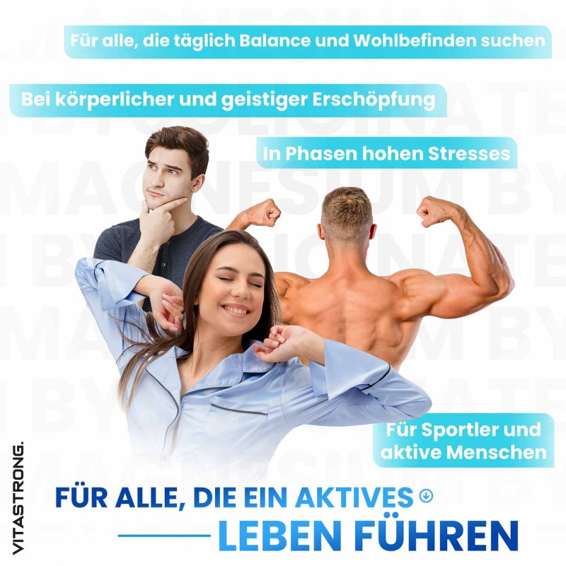 Magnesiumbisglycinat ist eine der am besten vom Körper aufnehmbaren Formen: Es stellt den Magnesiumspiegel schnell wieder her und fördert ein Gefühl der Ausgeglichenheit und des allgemeinen Wohlbefindens .