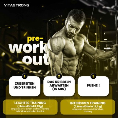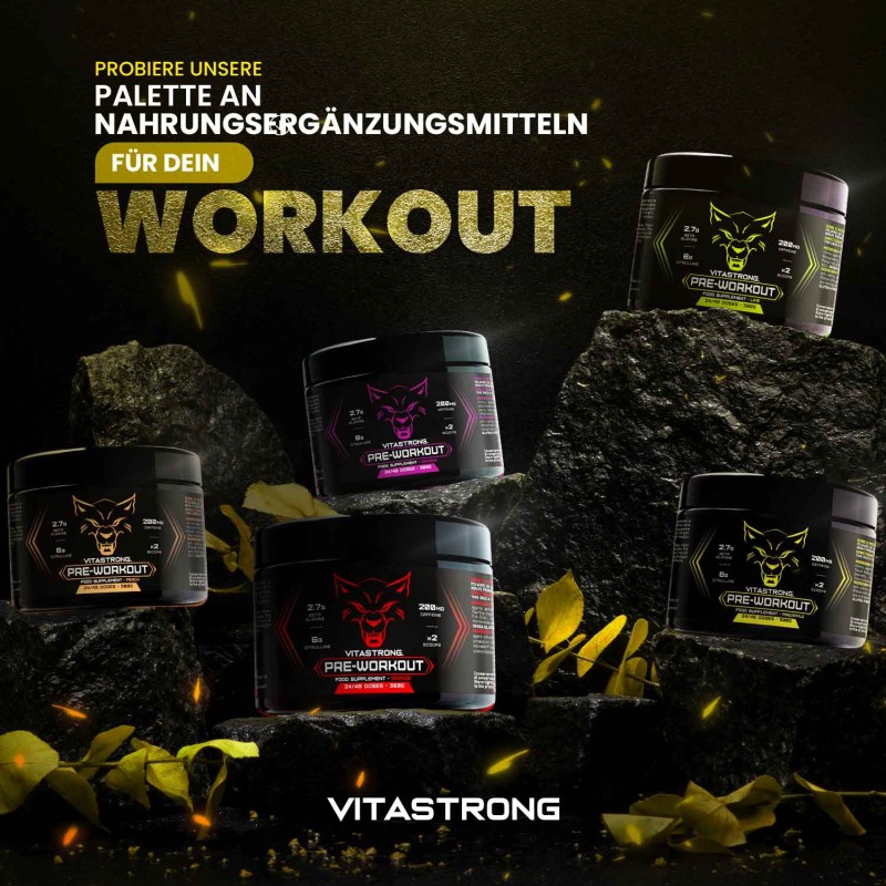 Vitastrong Preworkout ist das Flaggschiffprodukt von Vitastrong, eine leistungsstarke Formel, die jedes Training in eine gewonnene Herausforderung verwandelt. Dank der Kombination wichtiger Inhaltsstoffe wie L-Citrullin, Beta-Alanin, Koffein und AstraGin® verleiht Ihnen dieses Pre-Workout beispiellose Energie, Ausdauer und mentale Konzentration.