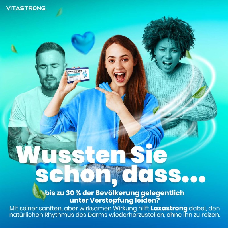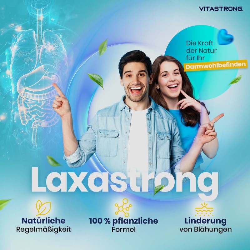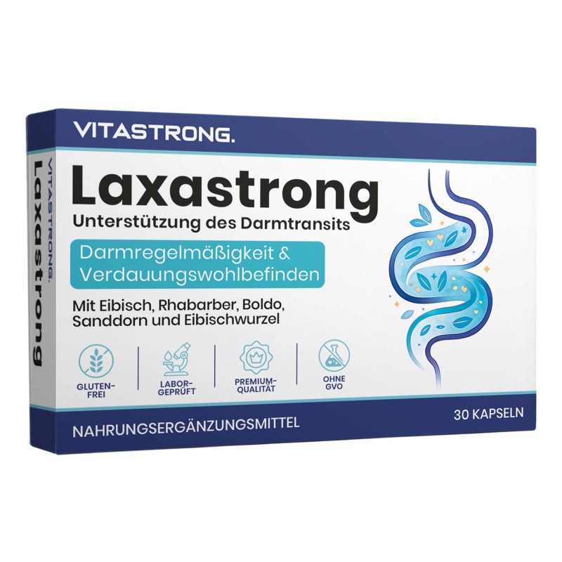 Vitastrong Laxastrong ist ein Nahrungsergänzungsmittel für Menschen mit Darmbeschwerden, Blähungen oder gelegentlicher Verstopfung. Die synergistische Formel auf Basis von Pflanzenextrakten (wie Rhabarber, Boldo, Sanddorn und Eibischwurzel) unterstützt sanft und effektiv die natürliche Darmmotilität, ohne zu reizen oder abhängig zu machen.