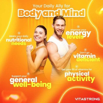 VitaStrong Multivitamin verfügt über eine verbesserte Formel, die die wichtigsten Mikronährstoffe für Sportler enthält, d. h. Vitamine der Gruppe B , Vitamine A, C, D, E, Pantothensäure und Folsäure, und ist für jede Sportart und jeden erfolgreichen Sportler geeignet, um die richtige Energie zu spenden Produktion.