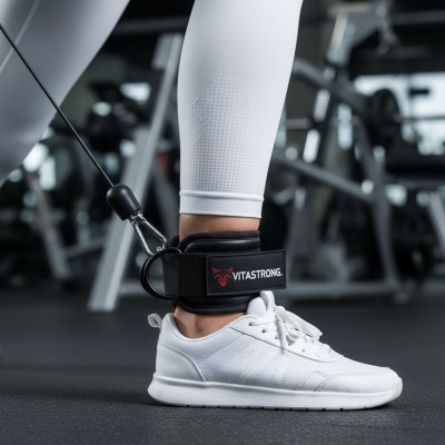 Vitastrong Knöchelstützen wurden entwickelt, um die Effektivität von Kabelübungen für Gesäß, Oberschenkel, Quadrizeps und Abduktoren zu verbessern. Die verstärkte Lederkonstruktion und die Innenpolsterung sorgen für einen stabilen und bequemen Sitz und verhindern Beschwerden oder Abdrücke auf der Haut.